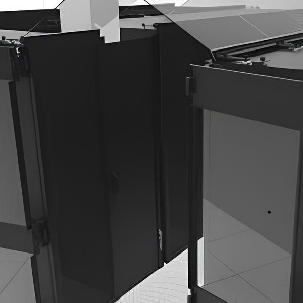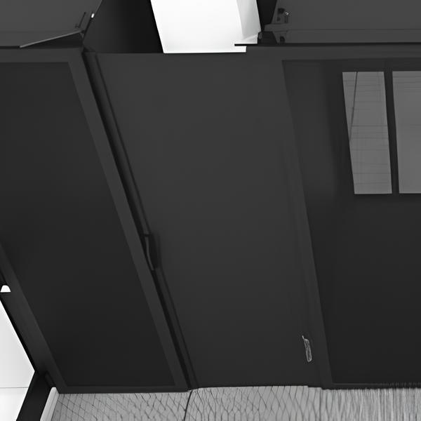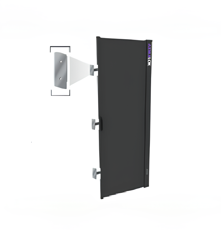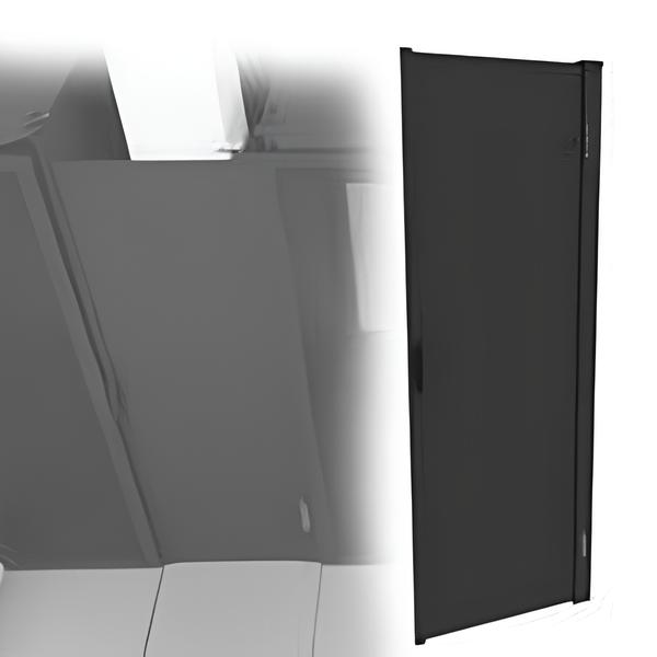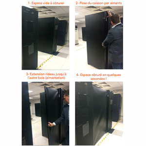 o Fixation magnétique d’un côté de la baie, tirage du panneau rétractable et fixation de l’autre extrémité sur la baie adjacente.