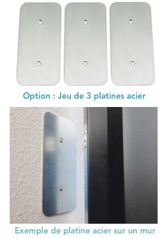 o Pour une installation contre un mur, des platines en acier doivent être fixées pour permettre la fixation par aimantation du rideau. Ces platines sont disponibles en option.